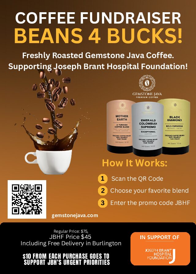 Enjoy premium, freshly roasted Gemstone Java Coffee at a special discounted rate while supporting the Joseph Brant Hospital...